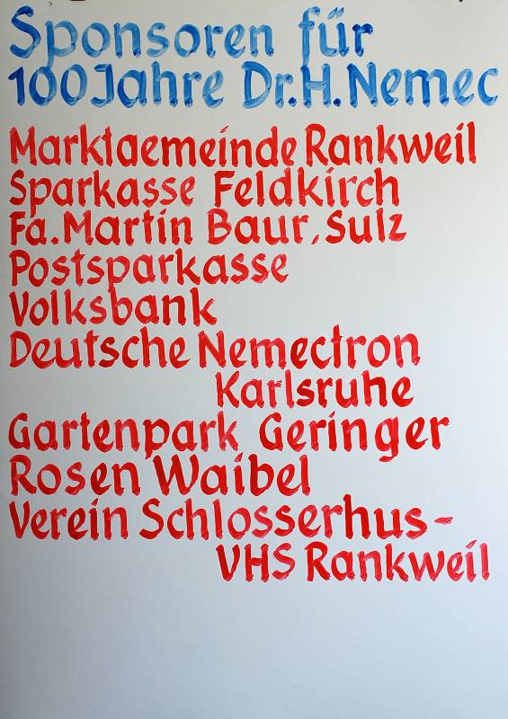 Dr. Hans NemecAus Anlass des 100. Geburtstages von Dr. Hans Nemec fanden vom 6. bis 8. Juli 2007 in Rankweil Gedenktage statt. Hans Nemec war Erfinder des Interferenzstromes und hatte medizinische Geräte entwickelt, um diese Ströme helfend und heilend anwenden zu können.