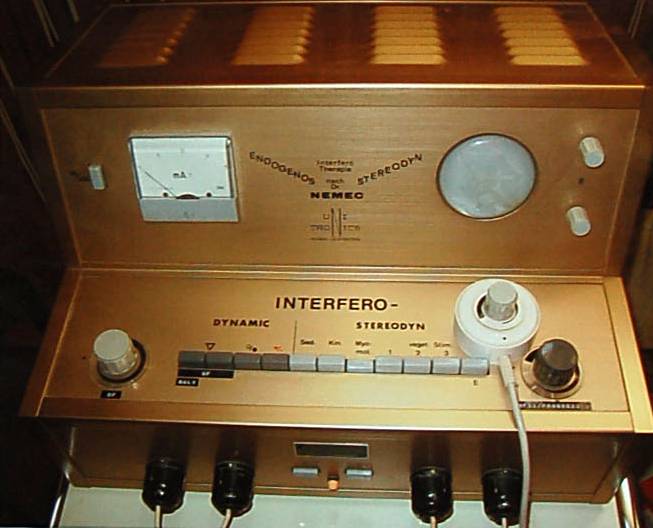 "Durch die günstigen Behandlungsergebnisse mit seinem Interferenzstromverfahren angeregt, suchte Nemec nach weiteren Möglichkeiten, interferierende Ströme - teils aus dem MF-Bereich, teils aus dem NF-Bereich - therapeutisch zu nutzen."